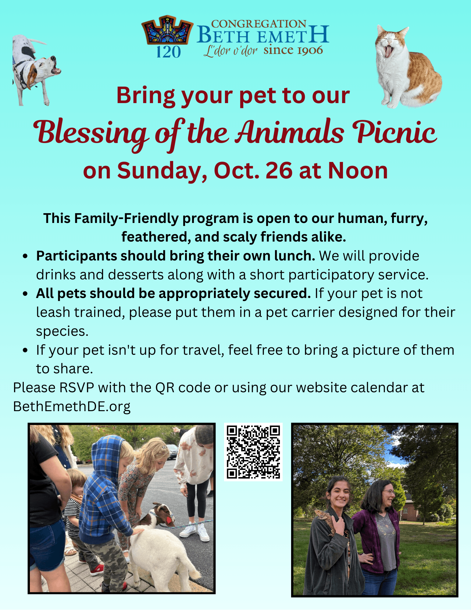 Please RSVP with the QR code or using our website calendar at BethEmethDE.org