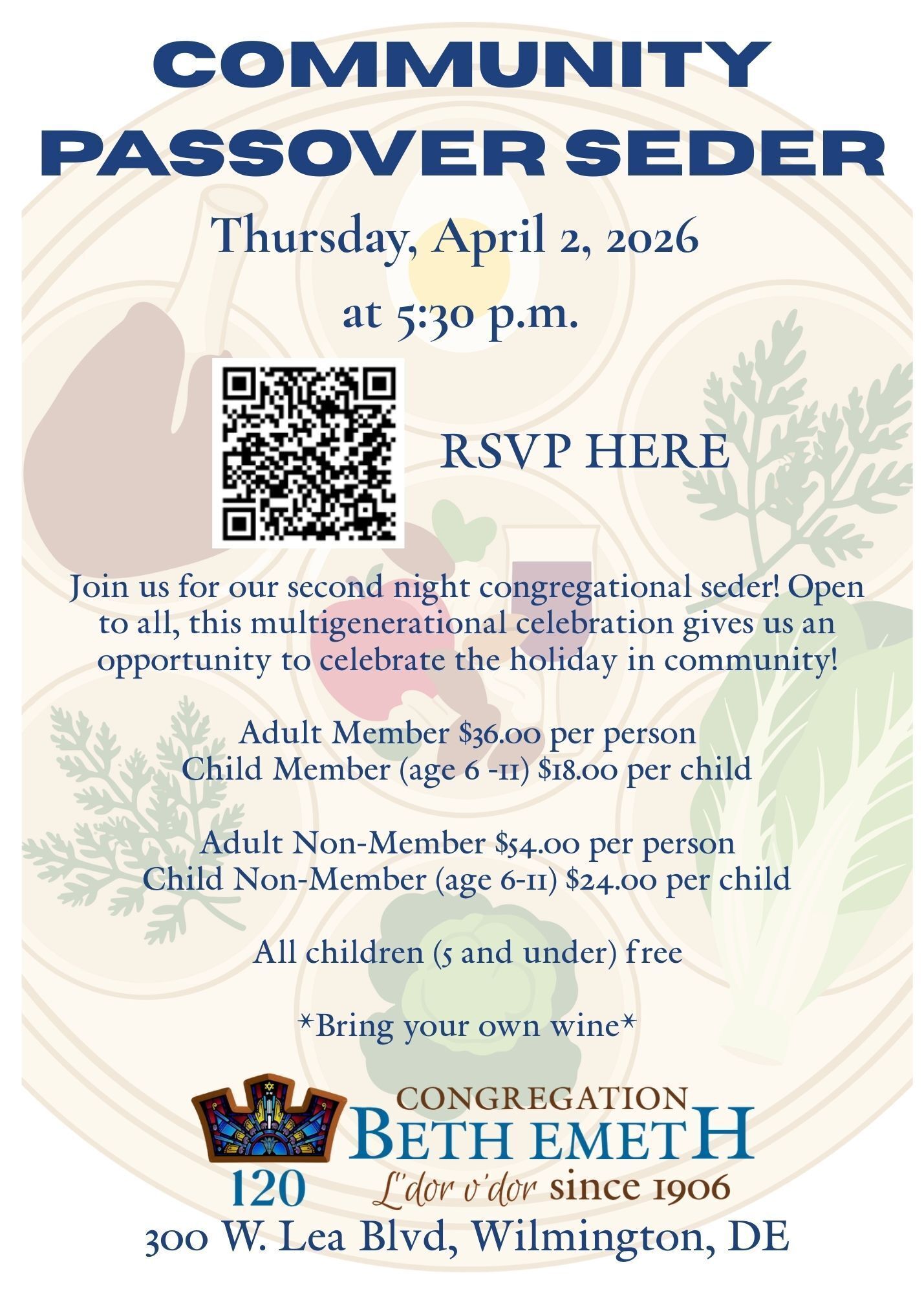 Join us for our second night congregational seder! Open to all, this multigenerational celebration gives us an opportunity to celebrate the holiday in community!