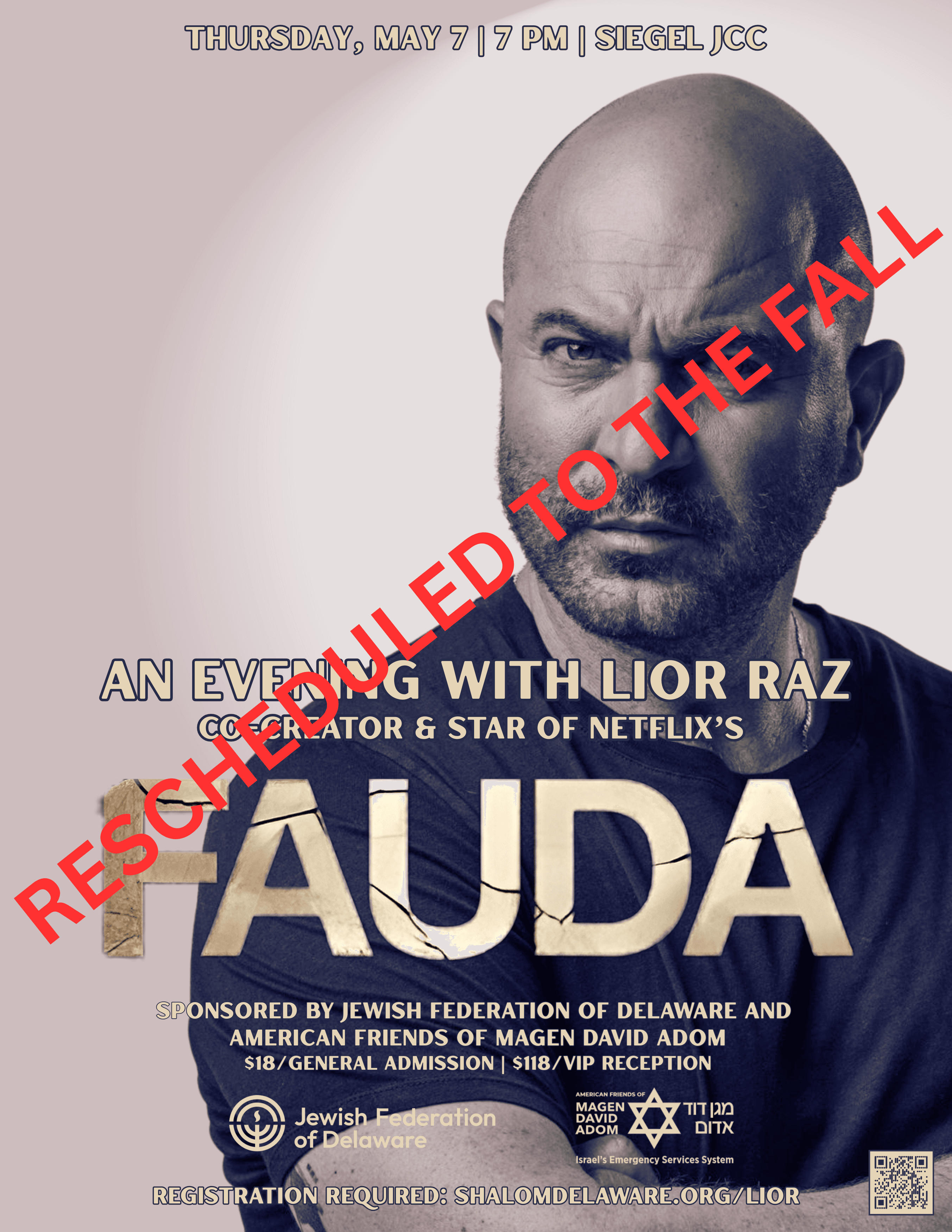 Please join us for an evening with Lior Raz, star and co-creator of the hit series Fauda. Presented by the Jewish Federation of Delaware and American Friends of Magen David Adom, the program will feature a live interview with Lior.