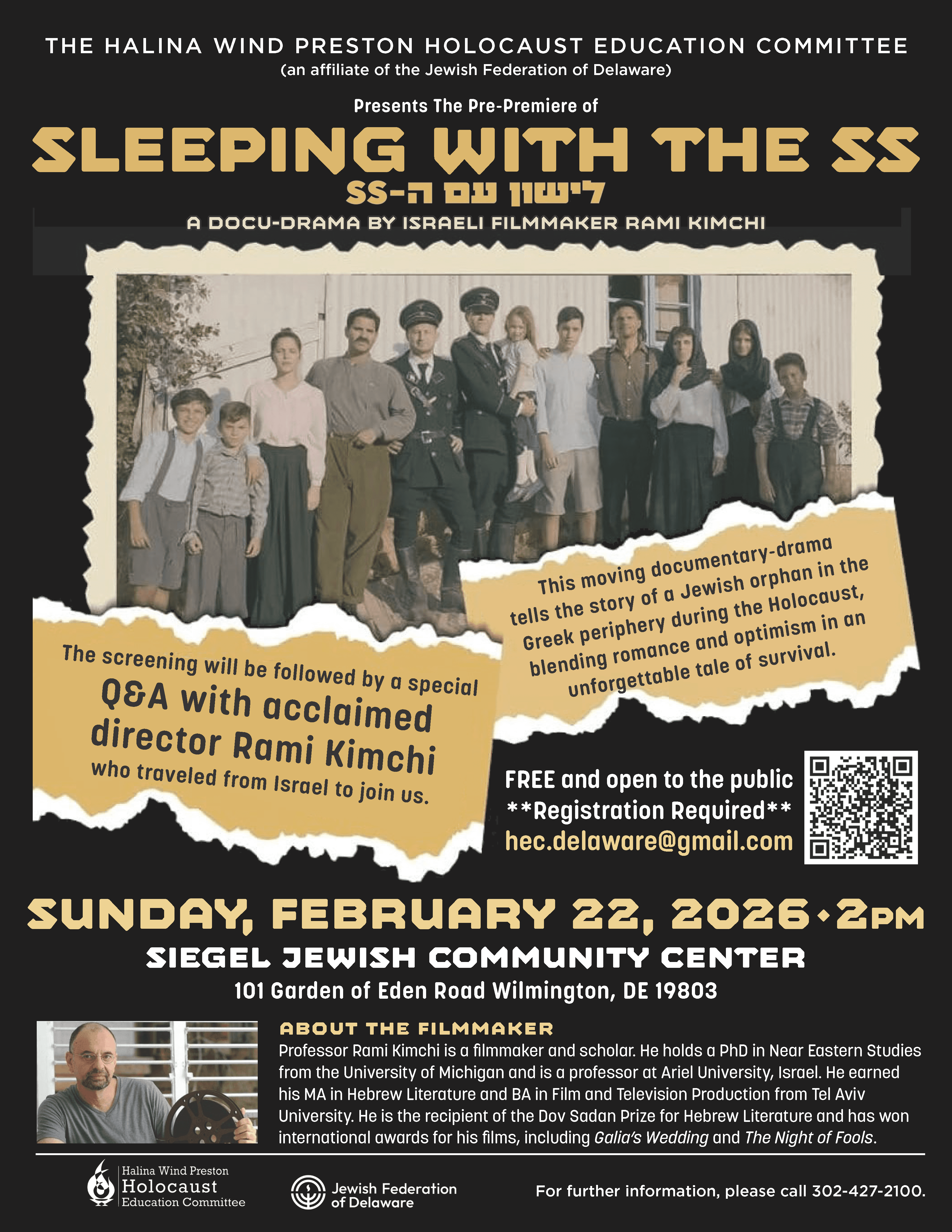 Film Screening: Sleeping with the SS. Free of Charge and Open to the Public. Registration is required, please respond with all guest names, emails, and phones - email hec.delaware@gmail.com.