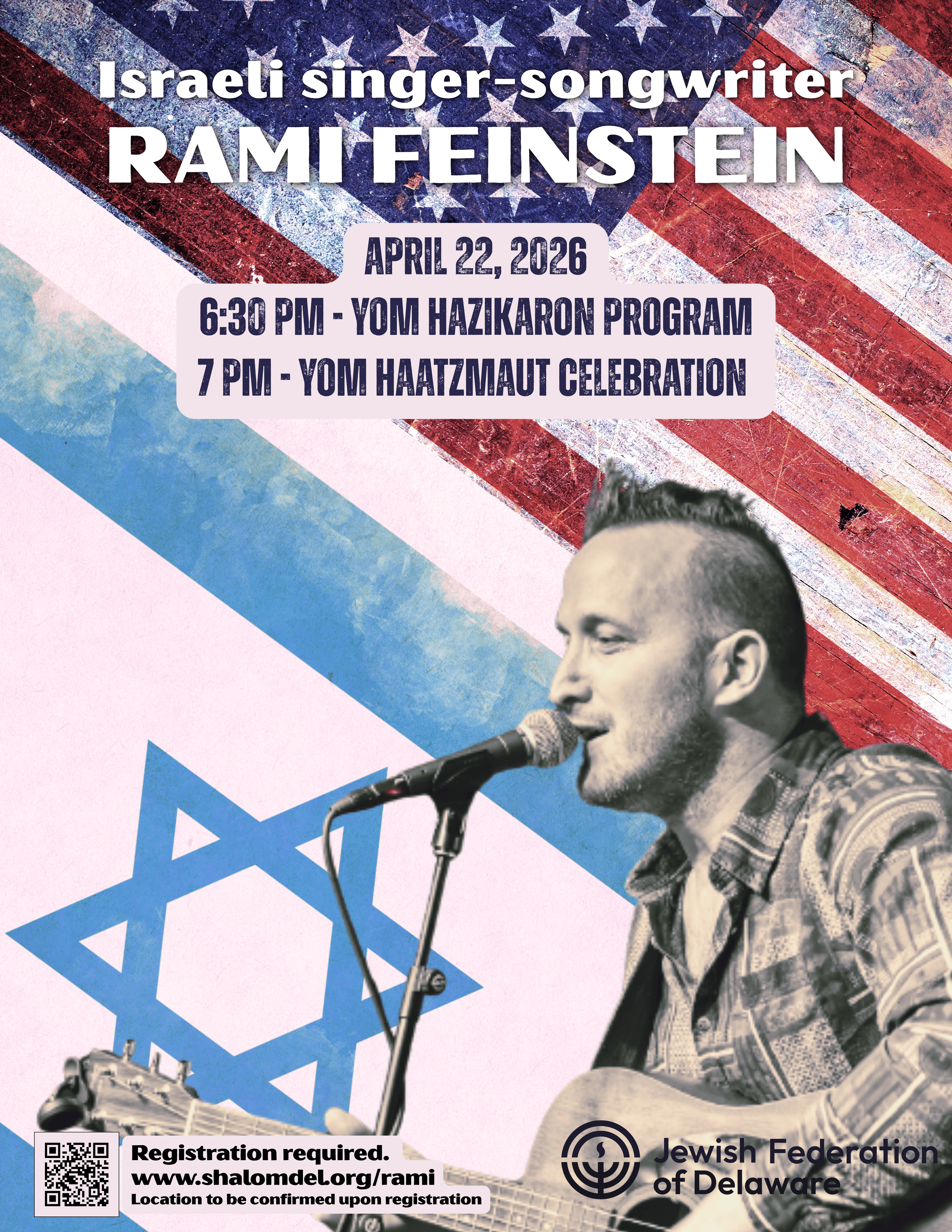 Please join us for a meaningful Yom HaZikaron program at 6:30pm, immediately followed by a Yom HaAtzmaut celebration at 7 pm with Israeli singer-songwriter Rami Feinstein.