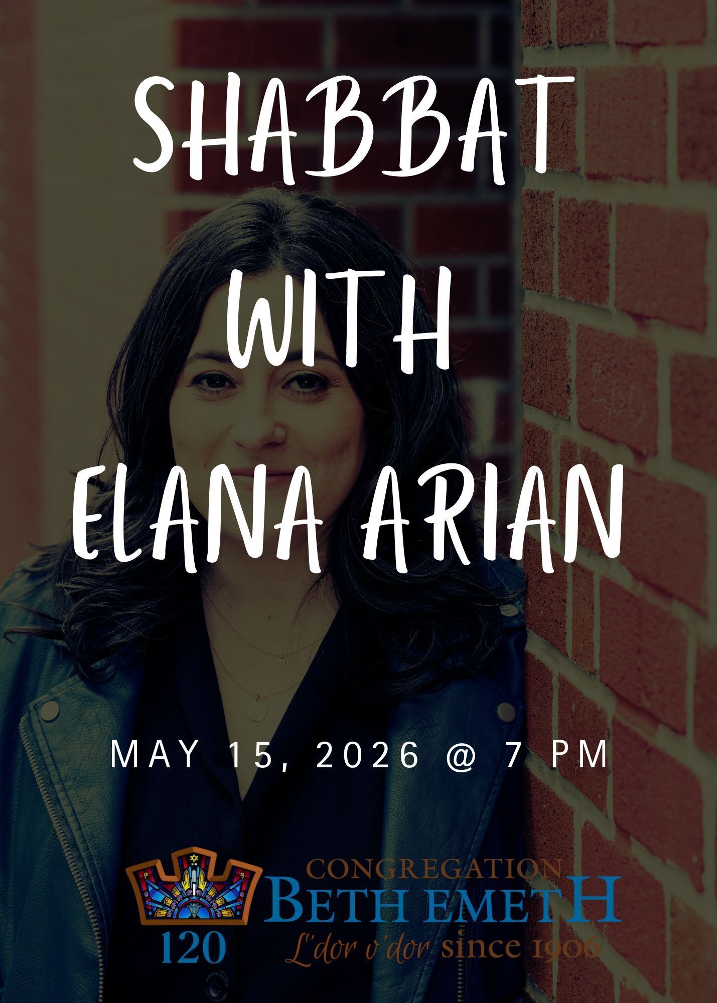 We’re celebrating 120 YEARS of Congregation Beth Emeth with a special Shabbat featuring the incredible Elana Arian.